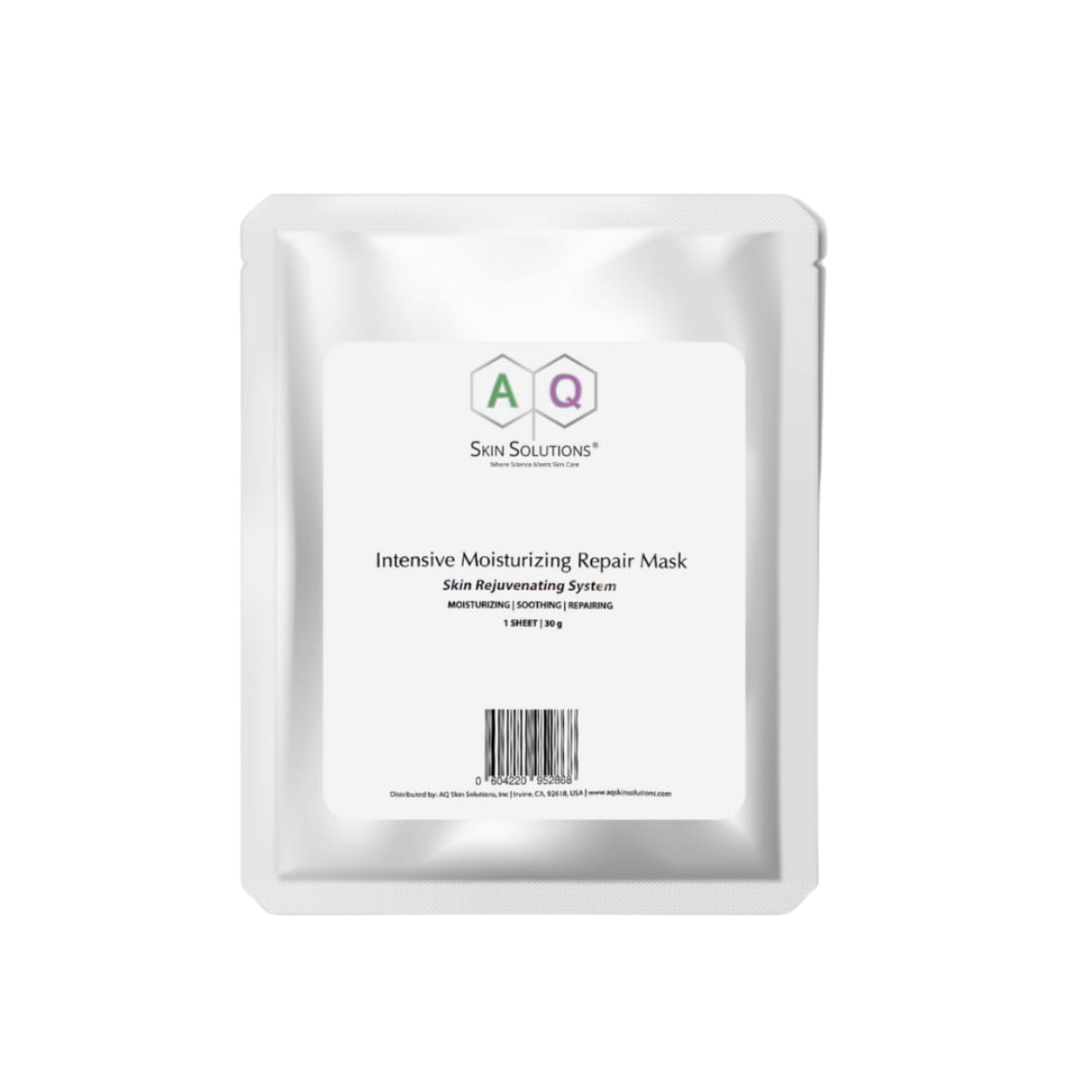 Intensive Moisturizing Repair Mask is the perfect at-home pampering treatment and maintenance skincare savior to use between your AQ GFIT facial treatments. Hydrating and deeply nourishing, this hydro-gel mask contains AQ’s patented Growth Factor formula. These growth factors have been clinically developed to match, in identical form, the growth factors found within the human body. This intensive mask increases cell and blood vessel production, as well as collagen and elastin production for a youthful complexion with healthy, radiant skin.